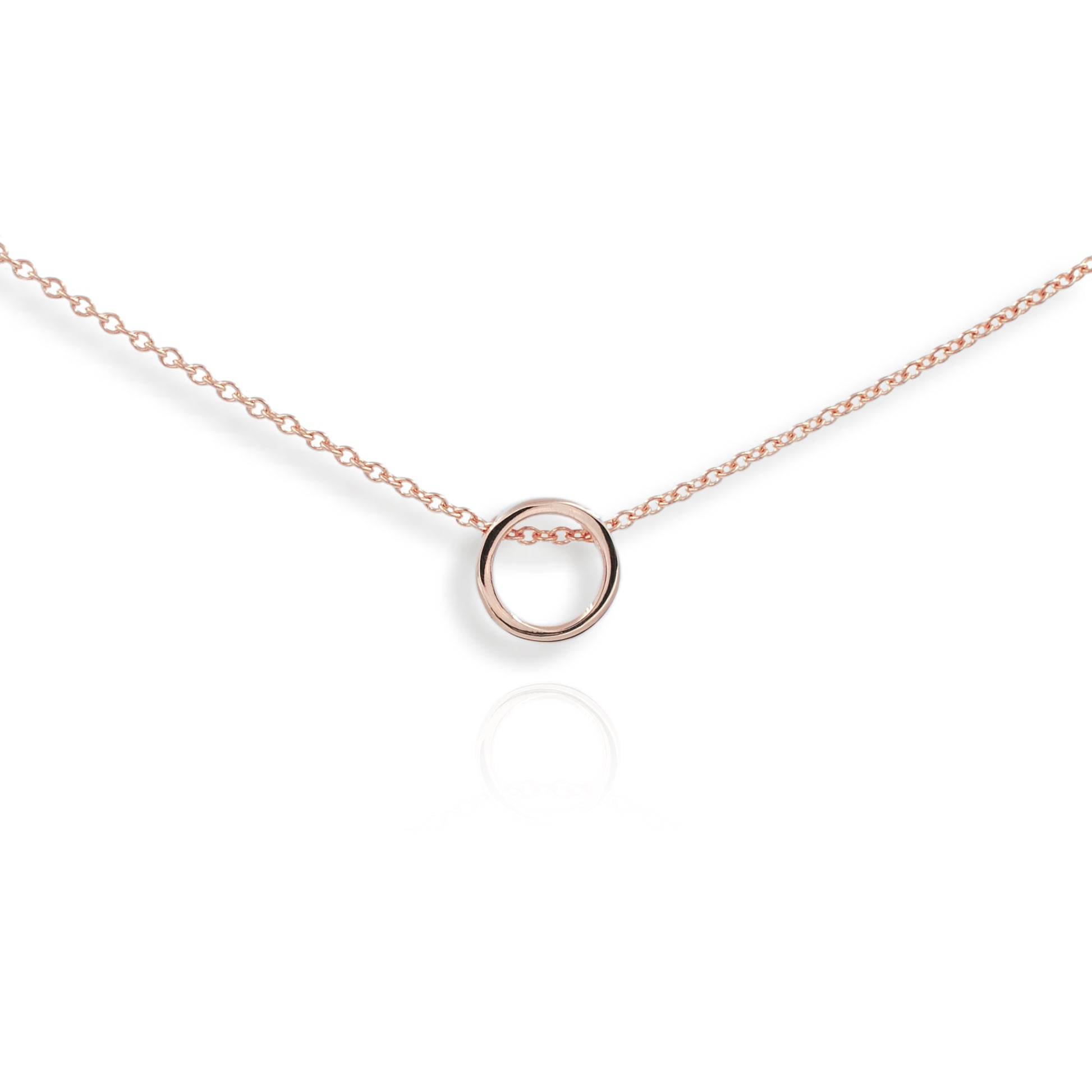 'Fidela' Mini 9ct Rose Gold circle pendant on a 9ct Rose Gold chain, other chain lengths are available.